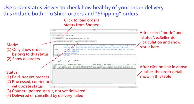 Order status viewer use to find out any courier problem in “To Ship” order and “Shipping” order.