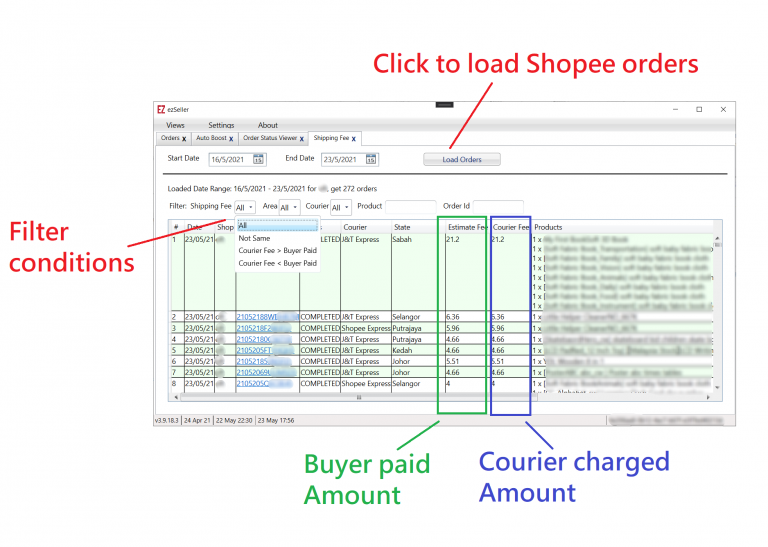 Shipping fee viewer use to check buyer paid shipping fee same with courier charged amount.